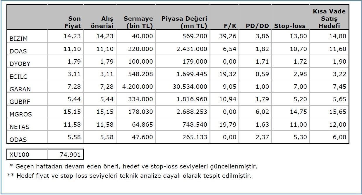 HAFTANIN HİSSE ÖNERİLERİ
