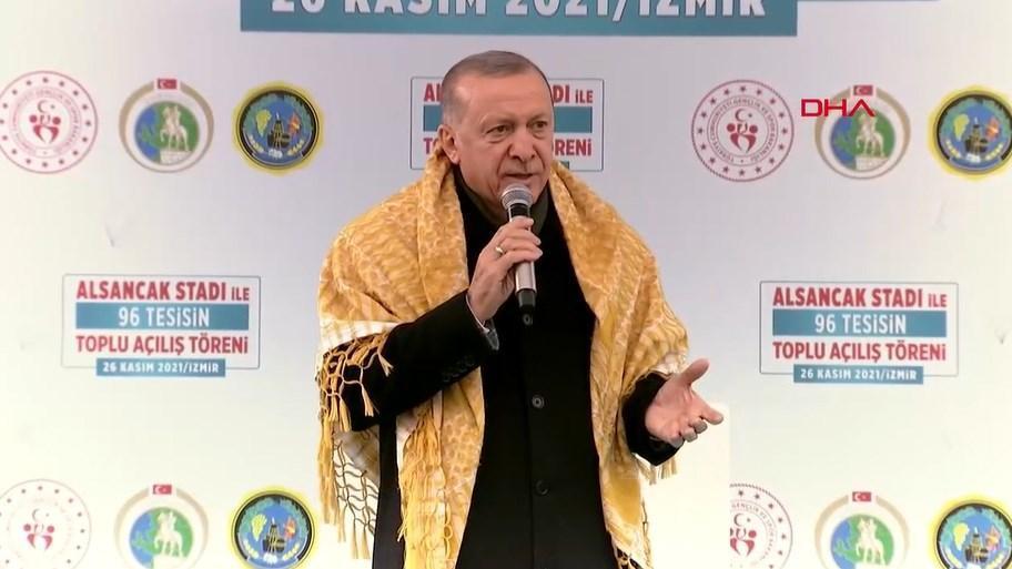 Cumhurbaşkanı Recep Tayyip Erdoğan, İzmir'de yapımı tamamlanan 100 tesisin toplu açılış töreninde açıklamalarda bulundu. Cumhurbaşkanı Erdoğan'ın konuşmasından öne çıkanlar şu şekilde: