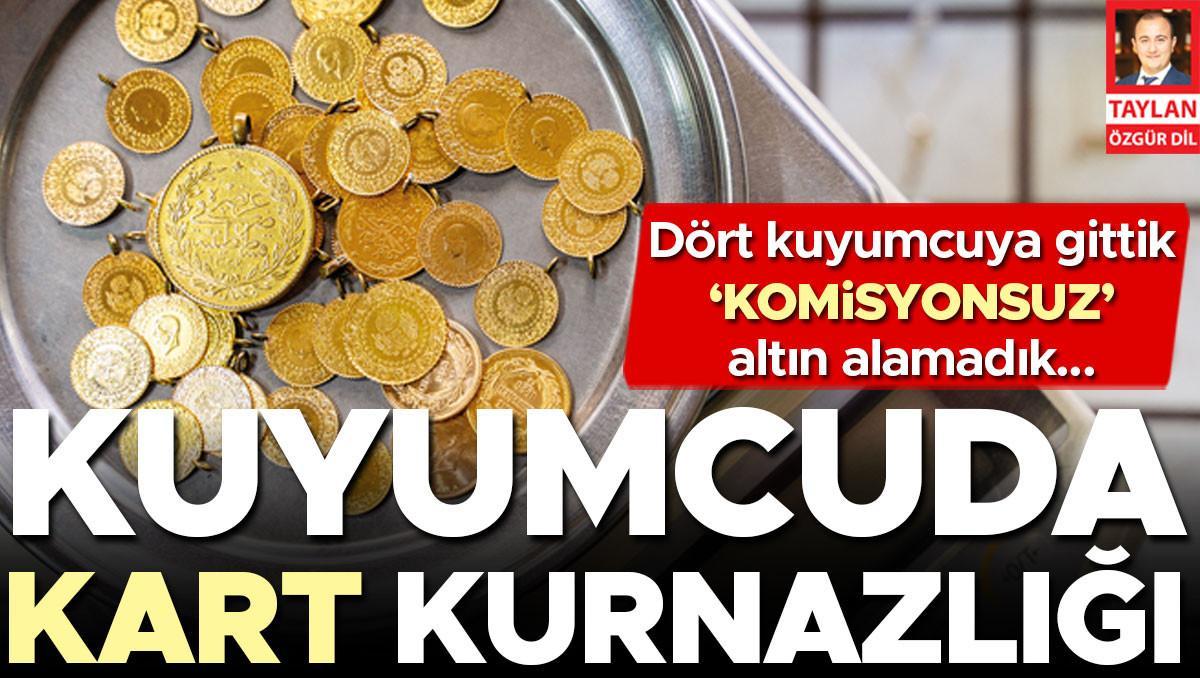 Son günlerde tüketicilerin, online şikâyet platformlarına kuyumcuların banka kartıyla altın satmaması veya yüksek komisyon almalarıyla ilgili adeta şikâyet yağmuru var. Biz de banka kartıyla çeyrek altın satın alabilmek için İstanbul’un Eyüpsultan ve Gaziosmanpaşa ilçelerindeki kuyumcuları dolaştık. İki kuyumcu “banka kartı” ile ödemeyi geri çevirirken biri ücreti şahıs IBAN’ına istedi. Kredi kartı kabul edenler ise yüksek komisyon kesileceğini belirttiler.