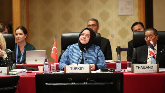 Ülkemizin Aile, Çalışma ve Sosyal Hizmetler Bakanı Zehra Zümrüt SELÇUK tarafından temsil edildiği toplantıda, Dönem Başkanı Japonya’nın belirlediği öncelikler kapsamında; demografik değişimin istihdama yansımaları, kadın ve genç istihdamının arttırılması için atılması gereken adımlar, gelişen teknolojiyle birlikte ortaya çıkan yeni meslek ve çalışma biçimleri konularında bilgi ve tecrübe paylaşımı yapıldı.