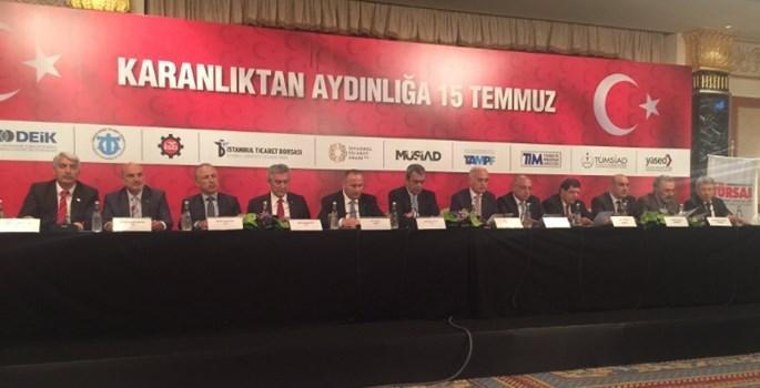 TİM, ASKON, DEİK, Deniz Ticaret Odası, İstanbul Sanayi Odası, İstanbul Ticaret Borsası, İstanbul Ticaret Odası, MÜSİAD, TAMPF, TÜMSİAD ve YASED 'den oluşan Sivil Toplum Kuruluşları demokrasiye ve milli iradeye darbe girişimine karşı ortak basın bildirisi yayınladı.
