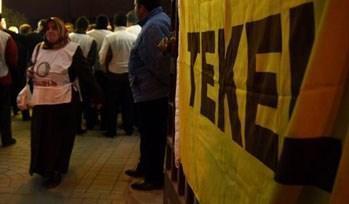4-C sözleşmesini imzalamamakta direnen binlerce Tekel işçisine dokuz saatlik iş bırakma eylemiyle destek veriyor
