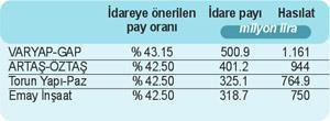 İhalede ikinci olan teklif Avrupa Konutları’nın mimarı ARTAŞ ve ÖZTAŞ ortaklığından geldi. Grup 944 milyon toplam hasılat, yüzde 42.5 idare pay oranı ve 401 milyon 200 bin TL idare payı önerdi.